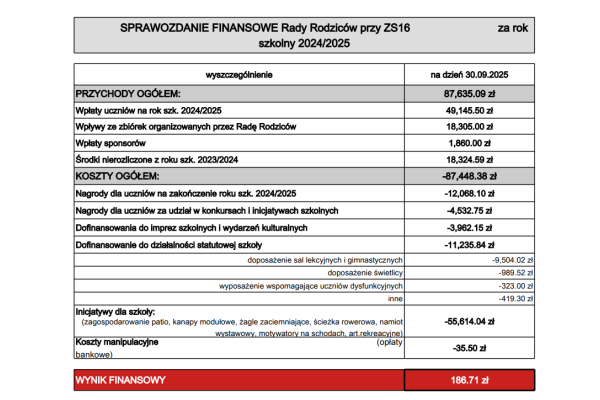 Sprawozdanie finansowe z działalności Rady Rodziców w roku 2024/25