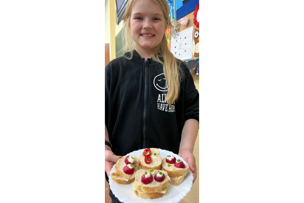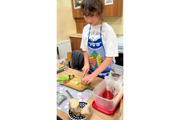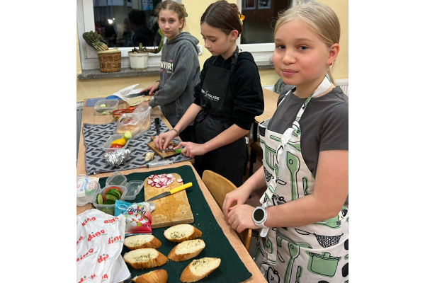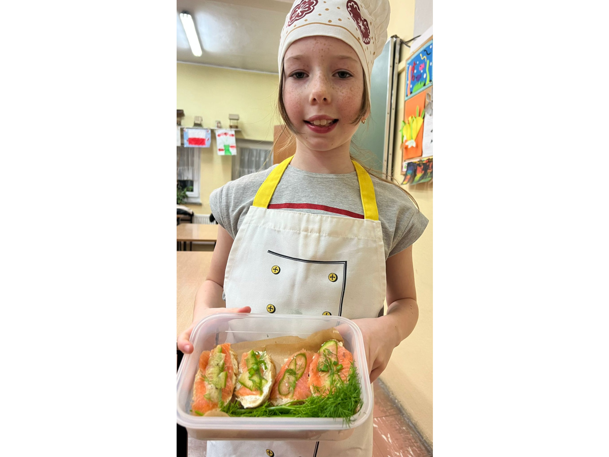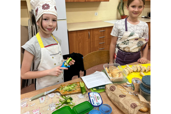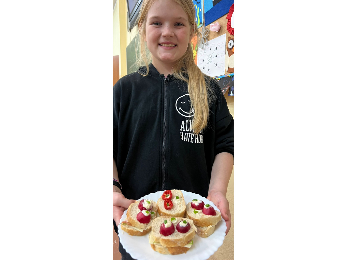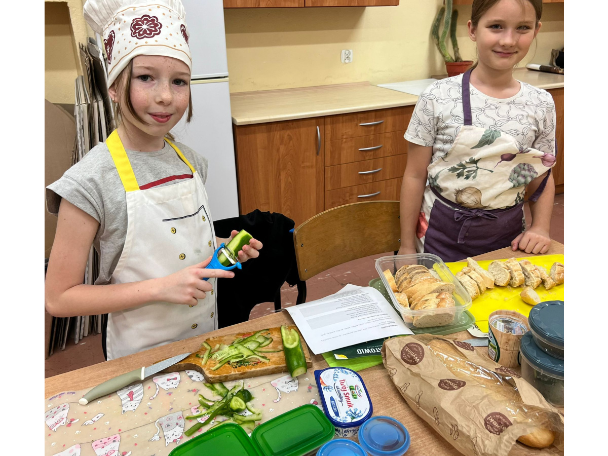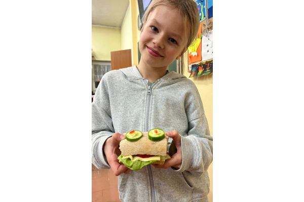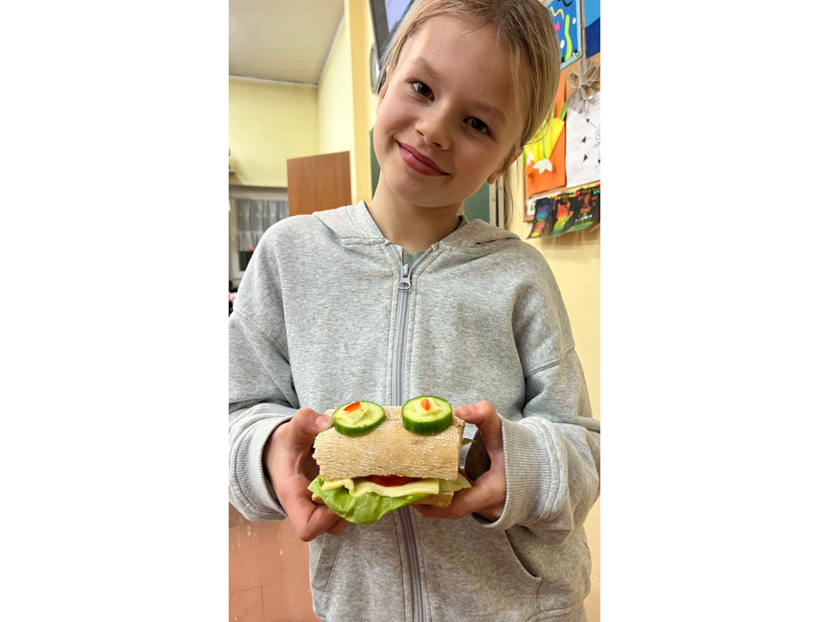 Podczas zajęć kulinarnych dzieci zamieniły kuchnię w prawdziwe laboratorium smaków i kolorów! Z warzyw, serów i pieczywa powstały kanapki tak fantazyjne, że spokojnie mogłyby trafić na wystawę sztuki współczesnej. Były kanapkowe zwierzaki, uśmiechnięte buźki i tęczowe piramidki . A gdy wszystko było gotowe – zniknęło w mgnieniu oka! Okazało się, że zdrowe jedzenie może być nie tylko smaczne, ale i całkiem wesołe.
