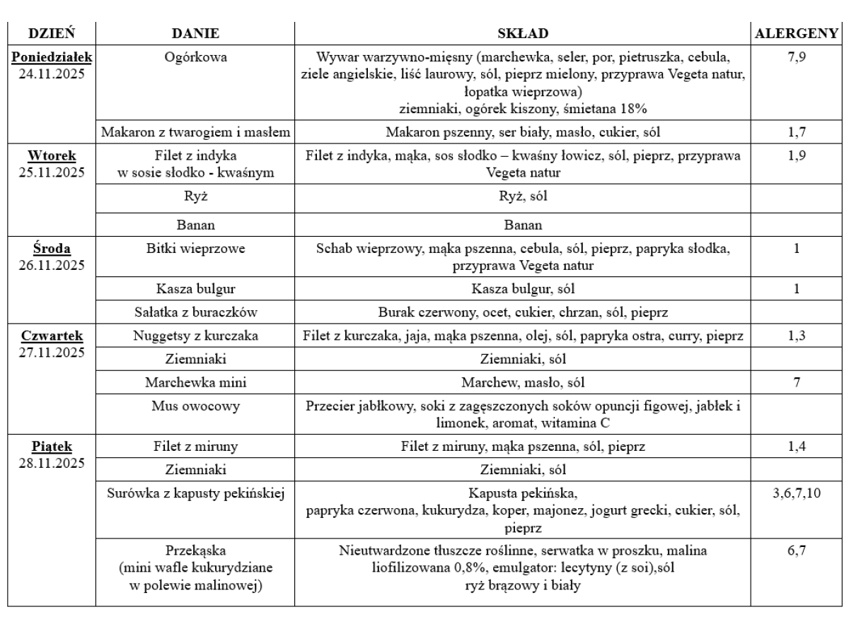 Jadłospis od 24.11.2025 do 28.11.2025r.