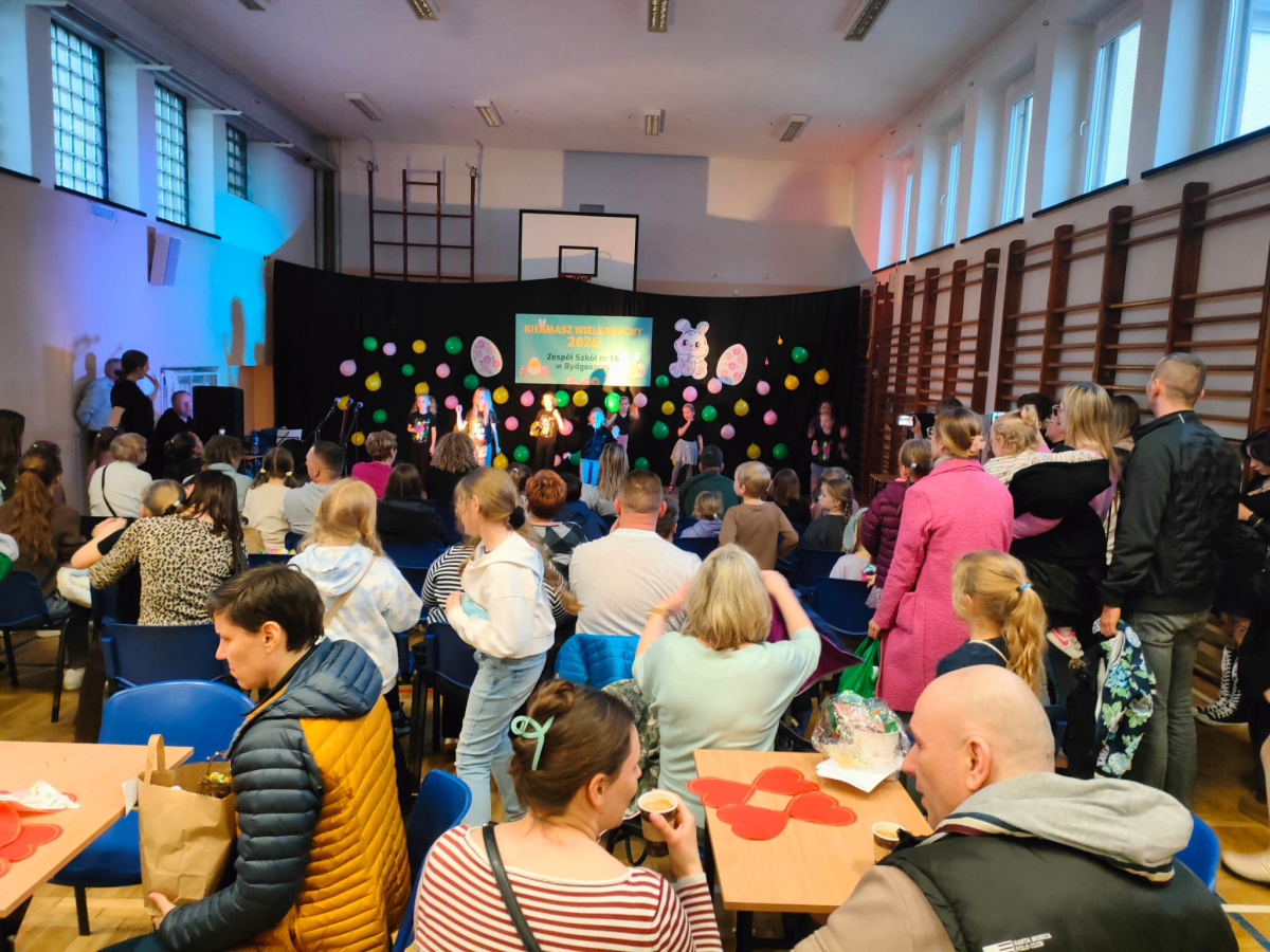 Kawiarenkę przygotował Samorząd Uczniowski ZS 16, a degustację przepysznego, świątecznego żurku zawdzięczamy Dyrekcji Szkoły. Uczniowie i ich Rodzice przygotowali mnóstwo przepięknego wielkanocnego rękodzieła, które można było nabyć na stanowiskach Rady Rodziców.