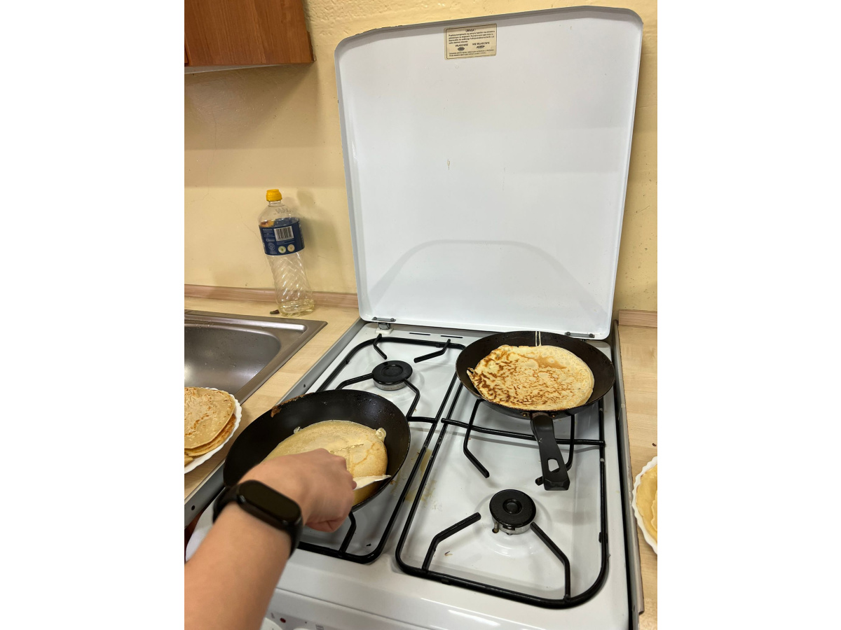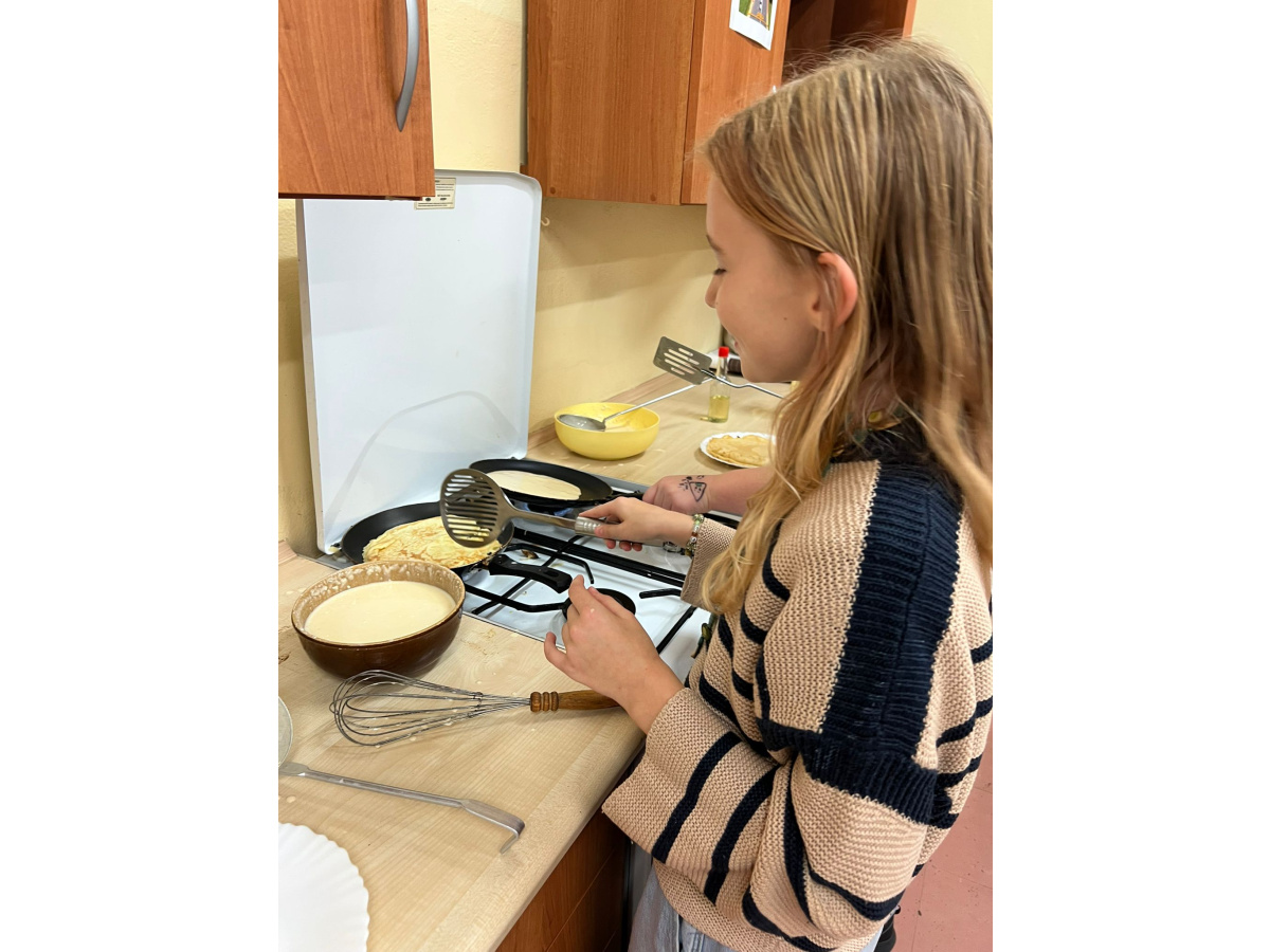 Na kolejnych zajęciach kulinarnych dzieci przejęły kuchnię i... patelnie! Było mieszanie ciasta, rozbijanie jajek z artystycznym dodatkiem skorupek i latające naleśniki.