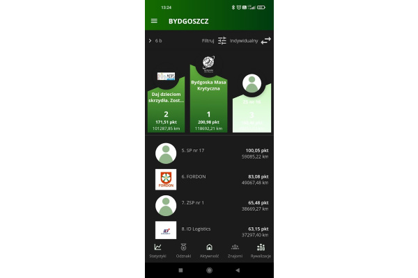 Zrzuty ekranu z aplikacji - Rowerowa Rywalizacja 2025