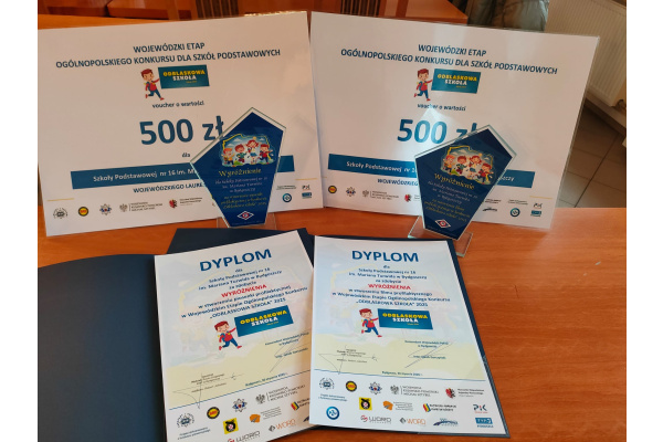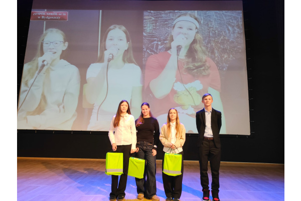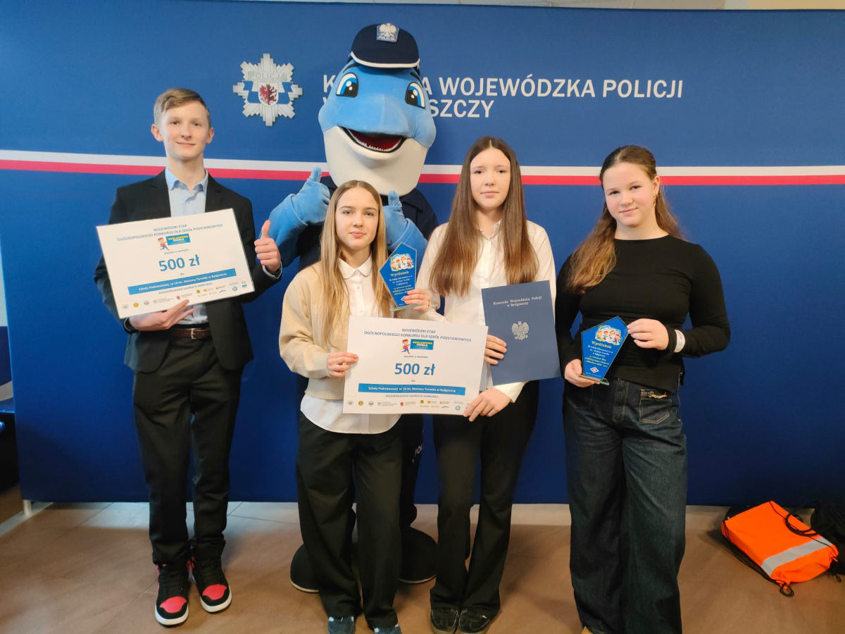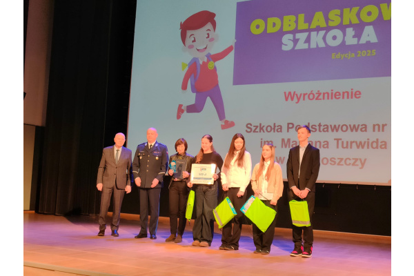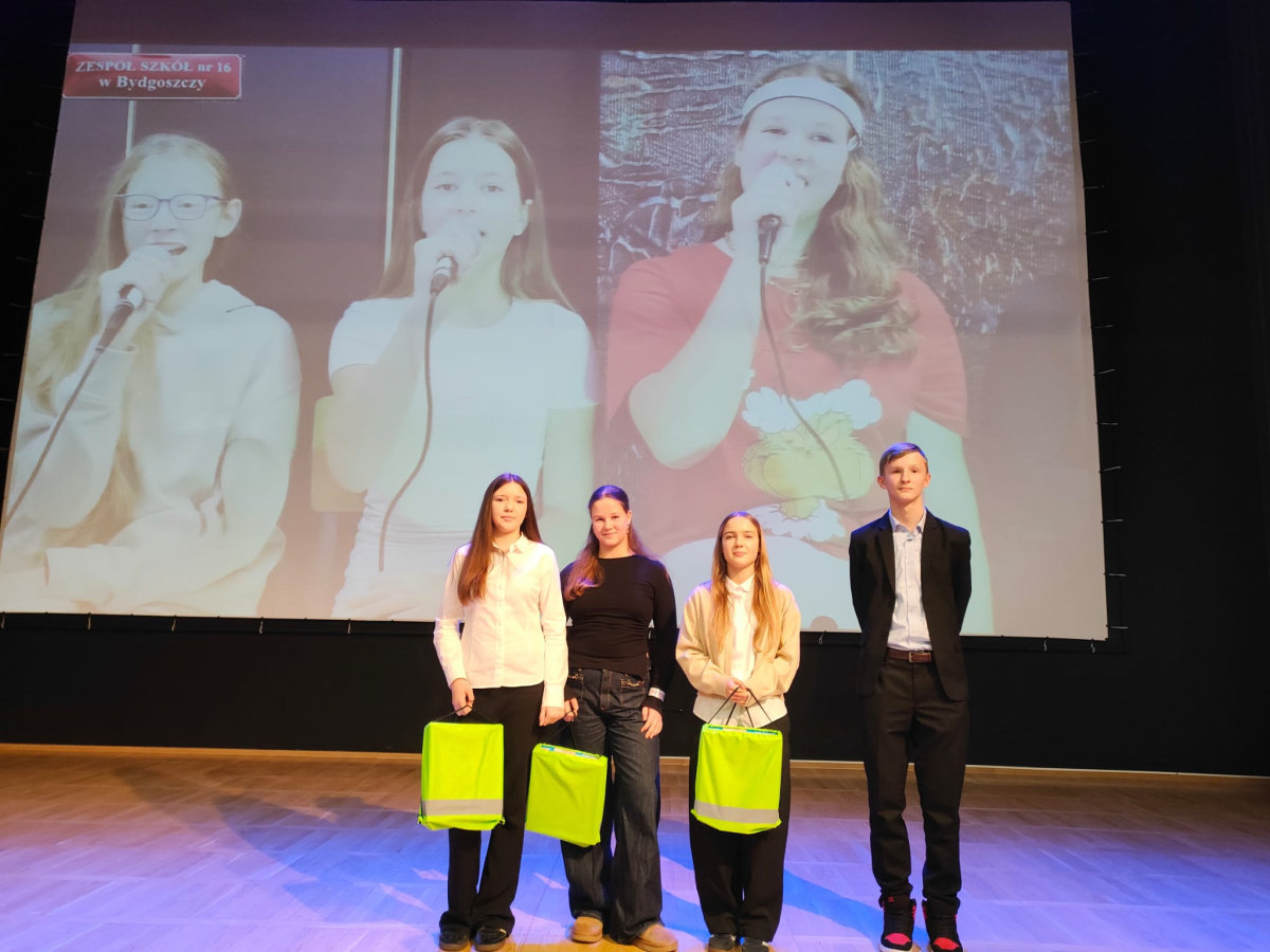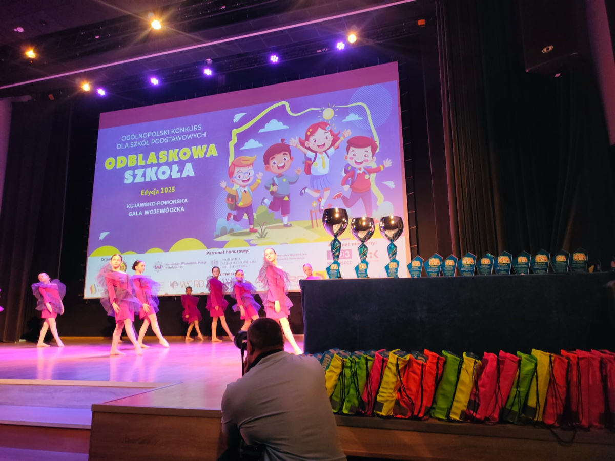 Z radością i dumą informujemy, że działania naszej szkoły zostały docenione podczas gali wręczenia nagród w wojewódzkim etapie ogólnopolskiego konkursu „Odblaskowa szkoła 2025”. Uroczystość odbyła się 30.01.2025 r. w Pałacu Młodzieży w Bydgoszczy. Organizatorem akcji był Wydział Ruchu Drogowego Komendy Wojewódzkiej Policji w Bydgoszczy, a partnerami przedsięwzięcia zostali: Urząd Marszałkowski Województwa Kujawsko-Pomorskiego, Kujawsko-Pomorski Urząd Wojewódzki, Kuratorium Oświaty w Bydgoszczy, Kujawsko-Pomorska Wojewódzka Rada Bezpieczeństwa Ruchu Drogowego, Wojewódzkie Ośrodki Ruchu Drogowego w Bydgoszczy, Toruniu i Włocławku oraz Zarząd Okręgowy Polskiego Związku Motorowego w Bydgoszczy. Wśród 122 szkół, które wzięły udział w konkursie, zajęliśmy 12 miejsce i odebraliśmy dwa spośród sześciu wyróżnień. Nagrodzono nas w kategoriach film i piosenka profilaktyczna.