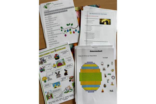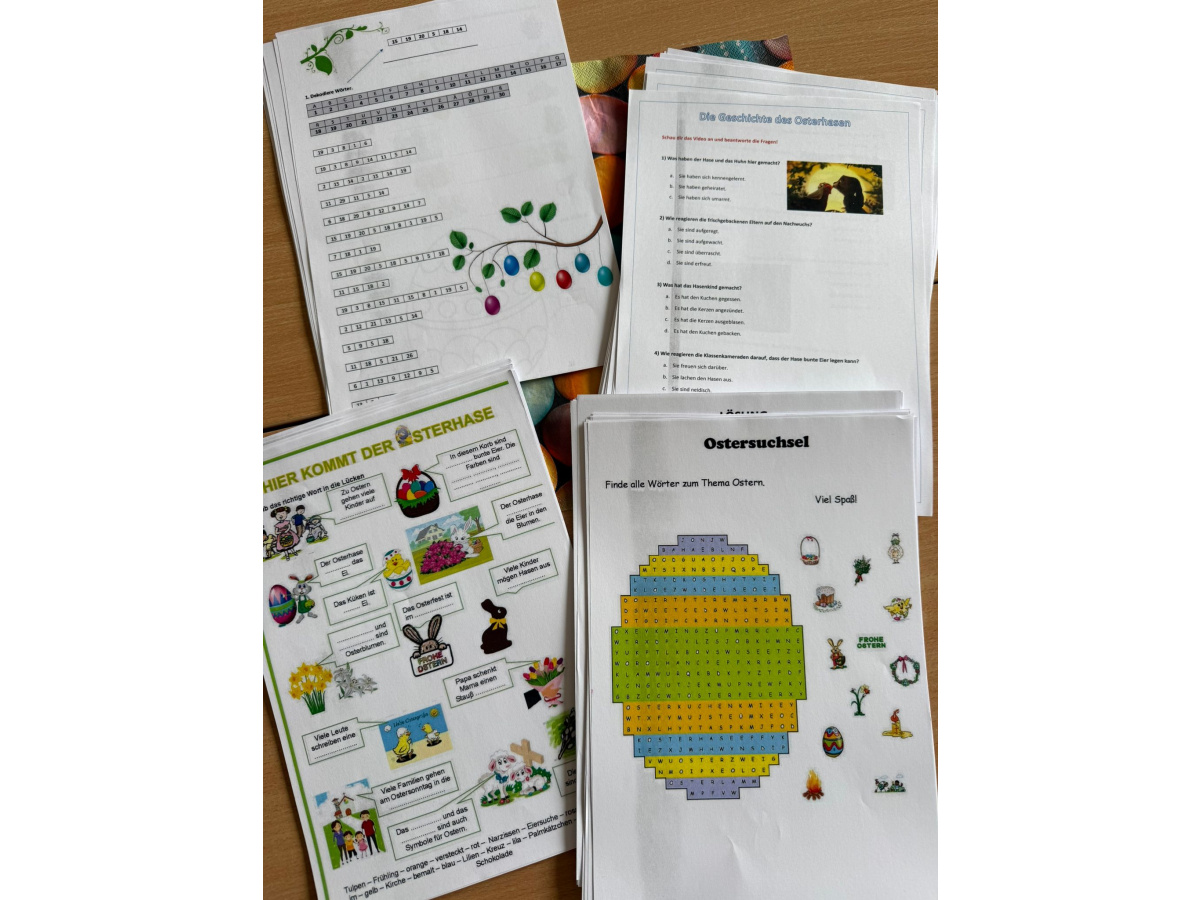 Podczas zajęć uczestnicy rozwiązywali krzyżówki i wykreślanki związane z Wielkanocą, pracowali z materiałem filmowym w języku niemieckim, a także rozwijali swoją kreatywność poprzez malowanie pisanek i wielkanocnych zajączków.