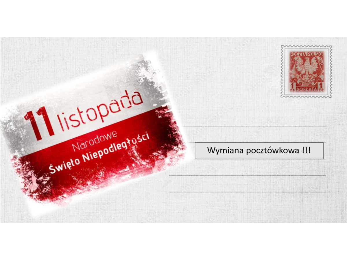 Zapraszamy uczniów naszej szkoły z klas 1 - 8 do wymiany pocztówkowej z okazji 107. rocznicy Odzyskania przez Polskę Niepodległości.