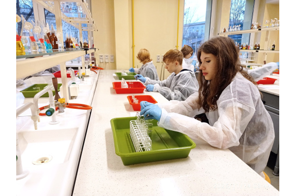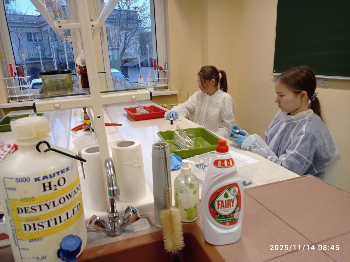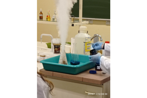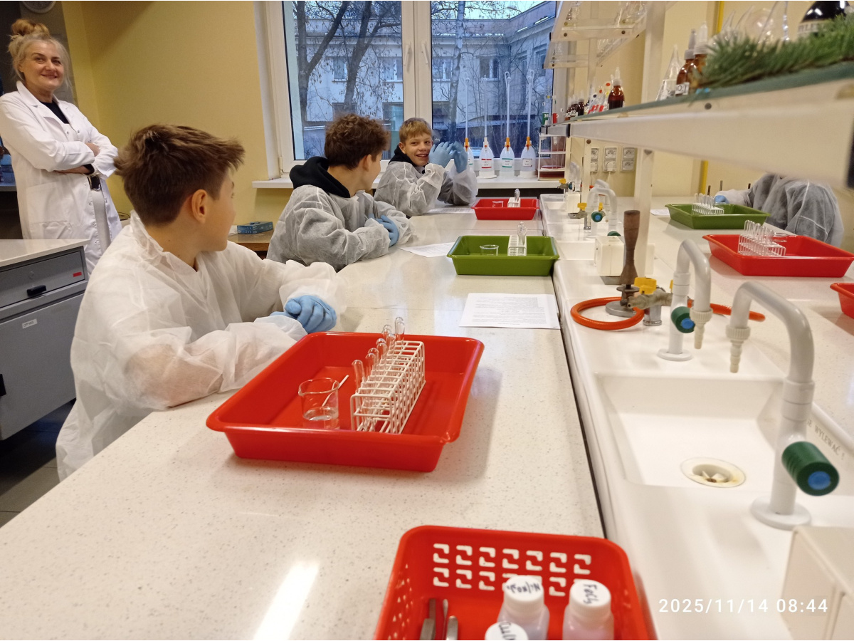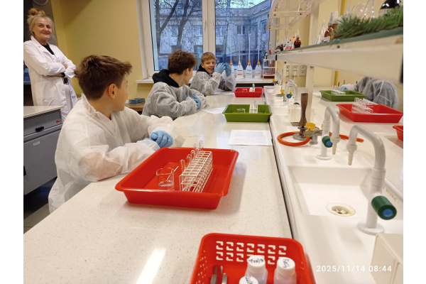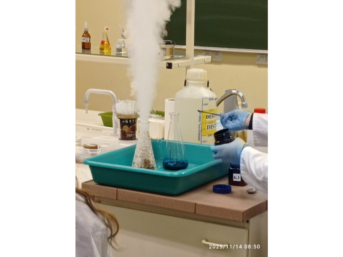 W piątek, 14 listopada 2025 roku, grupa naszych uczniów przeniosła się w fascynujący świat chemii podczas zajęć laboratoryjnych zorganizowanych przez Katedrę i Zakład Biochemii Collegium Medicum w Bydgoszczy. To była nie tylko lekcja, ale prawdziwa przygoda! Uczniowie mieli okazję samodzielnie przeprowadzać spektakularne doświadczenia: od burzy w "szklance wody", przez hodowlę kryształów, aż po kontrolowane wybuchy w dygestorium chemicznym. Każde z nich było nie tylko pouczające, ale także dostarczyło mnóstwo emocji i śmiechu. Zadowolone miny młodzieży dowodziły, że nauka może być niezwykle ekscytująca, zwłaszcza gdy można jej doświadczyć na własnej skórze.